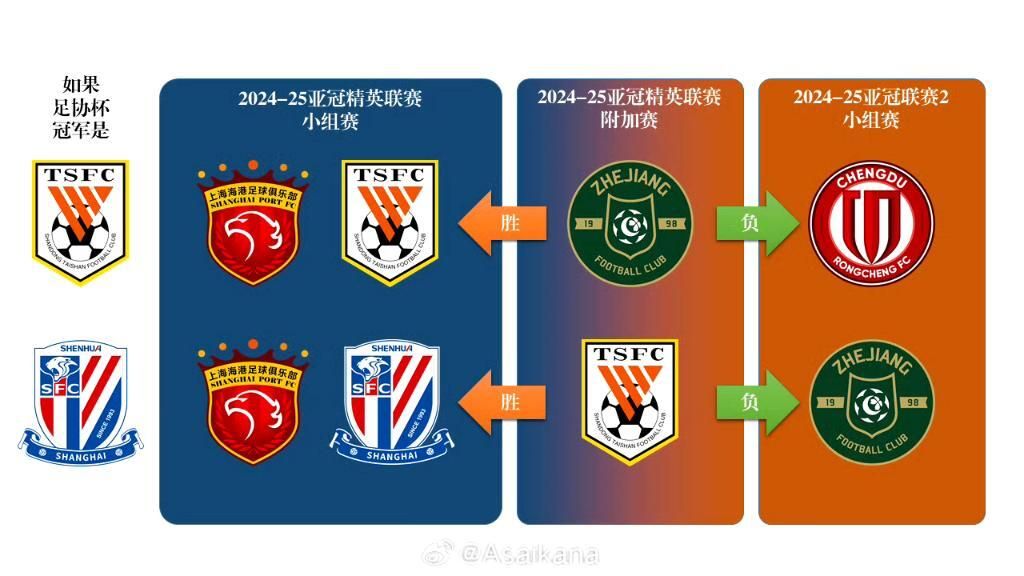 Shanghai Shenhua est qualifié en Ligue des Champions Elite d'Asie en rejoignant Shanghai Port le champion de CSL 2023, Shandong Taishan vice champion Chine en barrages Ligue des Champions Elite si défaite ils vont en Ligue des Champions d'Asie 2, Zhejiang Greentown en tant que 3e de CSL 2023 qualifié en Ligue des Champions d'Asie 2.