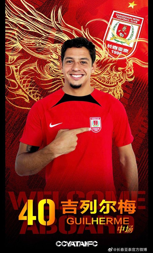Changchun Yatai signe également le brésilien Guilherme (ex Guangzhou City) qui joué à Goias en Serie A Brésilienne.