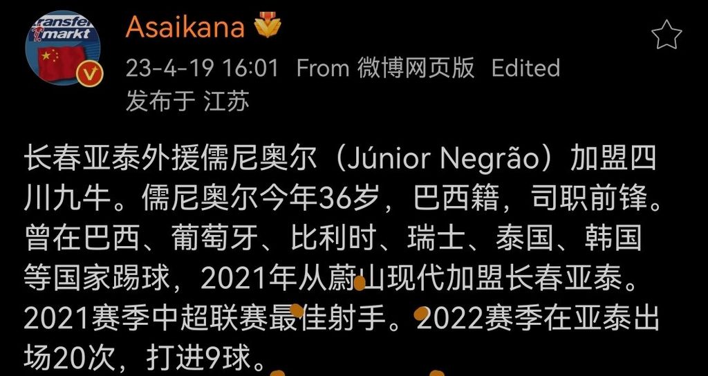 Junior Negrao s'engage au Sichuan Jiuniu en China League One pour la saison 2023 !