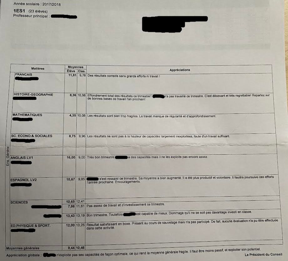 Bordel.. mes bulletins c’est la même courbe descendante… 17 de moyenne général au collège to 9 de moyenne général au lycée