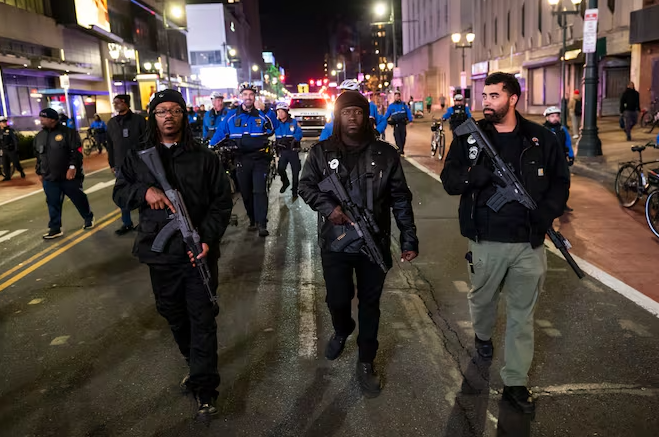 il y'a d'ailleurs des manifestants avec des M16 en main comme le groupe des black panther