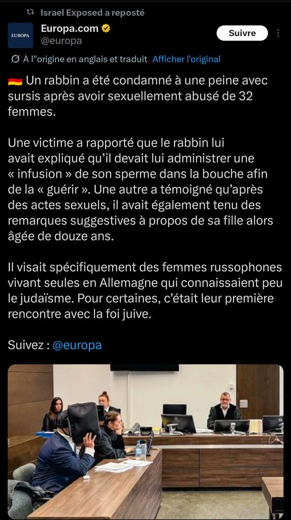 Nouveau délire, l'infusion au sperme de rabbi qui soigne les maladies