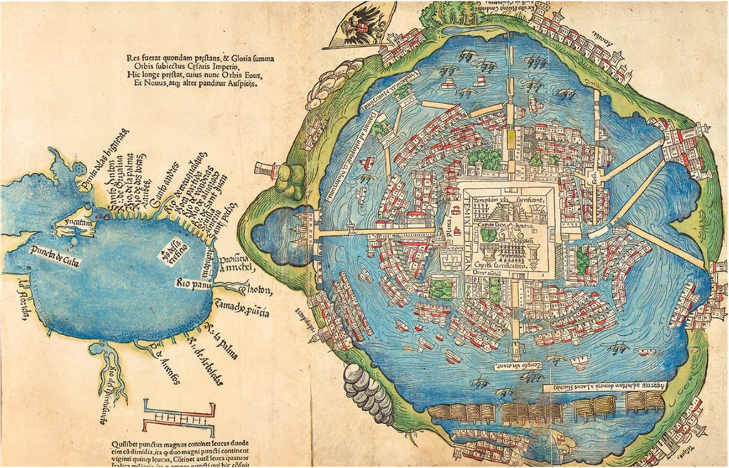 En 1521, Tenochtitlan est la capitale de l'Empire Aztèque, peuplée de 200 000 à 300 000 habitants, c'est la ville la plus peuplée d'Amérique et l'une des plus peuplées au monde, au même niveau que Paris ou Constantinople et 5 fois plus grande que Londres.