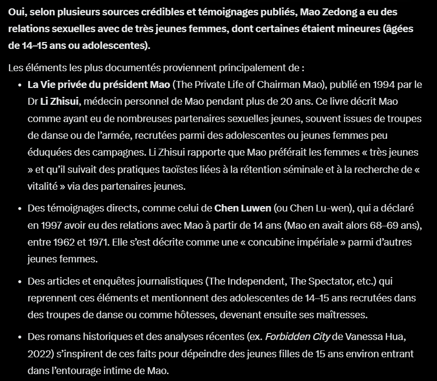 Mao c'était il y a plus de 50 ans hein. Le pays n'a plus grand chose à voir avec celui de son époque.