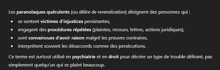 Vous devriez vous renseigner sur ce que sont les paranoïques quérulents...