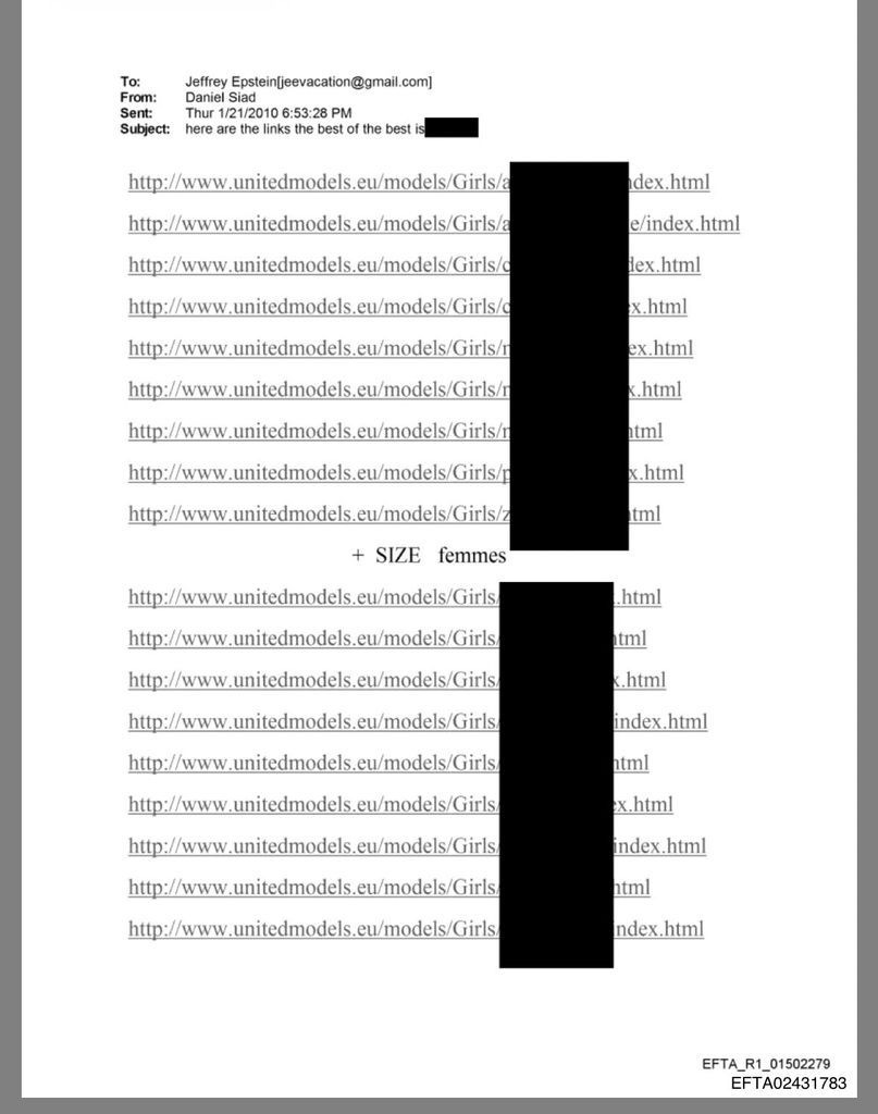 et que l'agence de mannequinats française donnaient des listes a Epstein comme une simple liste de course