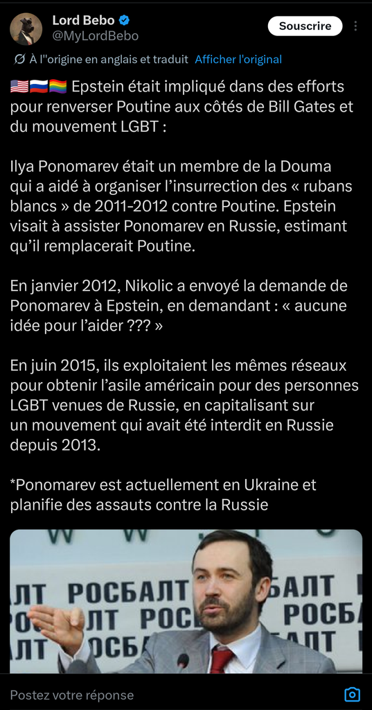 Epstein et Bill Gates ont tenté de renverser Poutine avec l'aide du golem LGBT