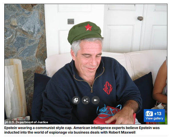 American intelligence experts believe Epstein was inducted into the world of espionage via business deals with Robert Maxwell, the disgraced media magnate who - like Epstein - died in murky circumstances; in Maxwell's case his body was found floating in the Atlantic in 1991, having apparently fallen overboard from his yacht.