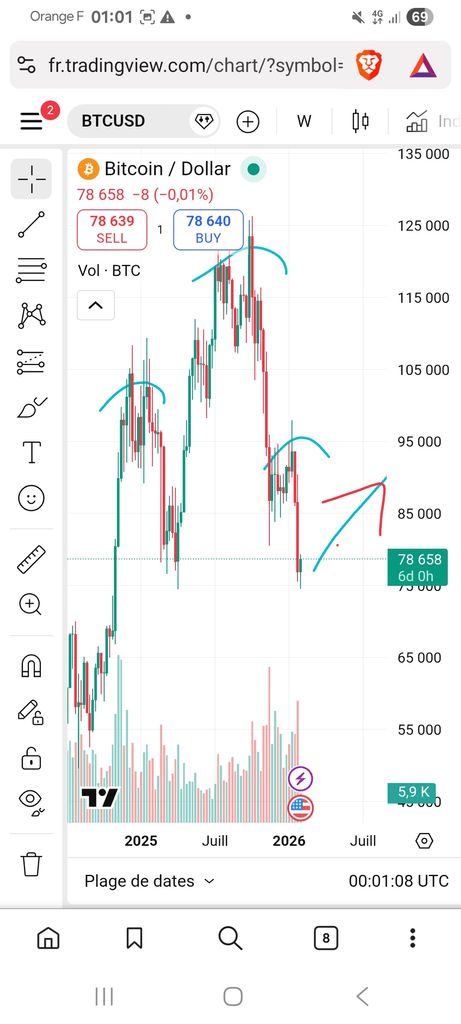 Sinon je vois dou vient la chute du bitcoin. A cause du nasdaq... Ca sent le crach de l’ia .. je vais bientot recharger je crois 50 % de mon portefeuille sur sp500 equal weight et nasdaq.