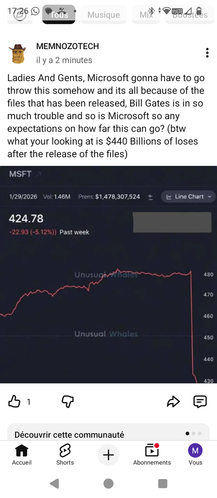 Microsoft prends surtout cher pour sa mauvaise publication, et l’échelle de ton graph est trompeuse, ils ont perdu 10% sur les derniers jours ce qui est beaucoup mais pas un plongeon comme ça en donne l'impression.
