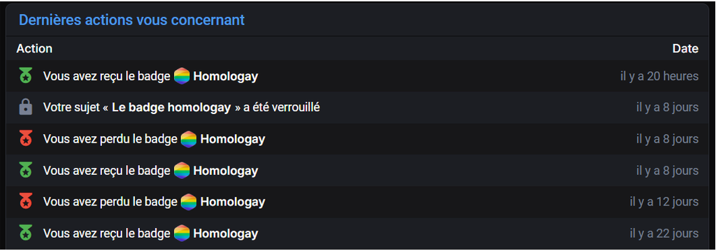 Bah c'est un badge de merde qui reprend des codes des extremistes lgbt et qui est attribué par moquerie sur le forum.
