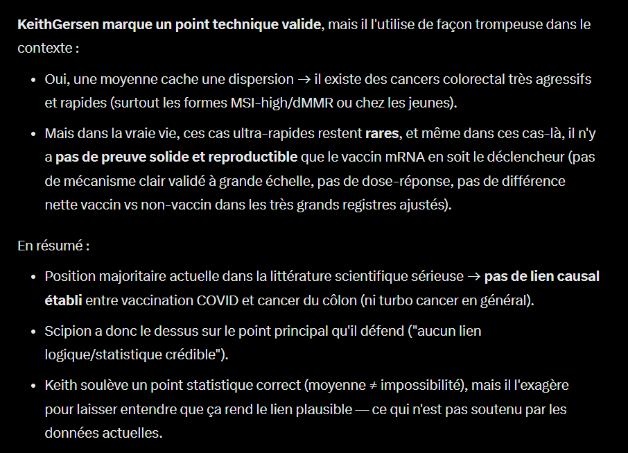 " vu la moyenne de développement du cancer du colon c'est au moins statistiquement peu probable" et non, justement !