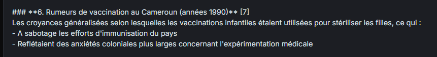 - **Fausses rumeurs et théories du complot** (tétanos-HCG, affirmations de dépopulation)