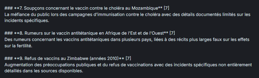 De nombreuses affirmations virales selon lesquelles les vaccins causeraient une stérilité de masse, un empoisonnement ou une dépopulation en Afrique manquent de preuves crédibles mais ont circulé pendant des décennies, ce qui rend difficile la reconstruction de la confiance par les autorités sanitaires [15].
