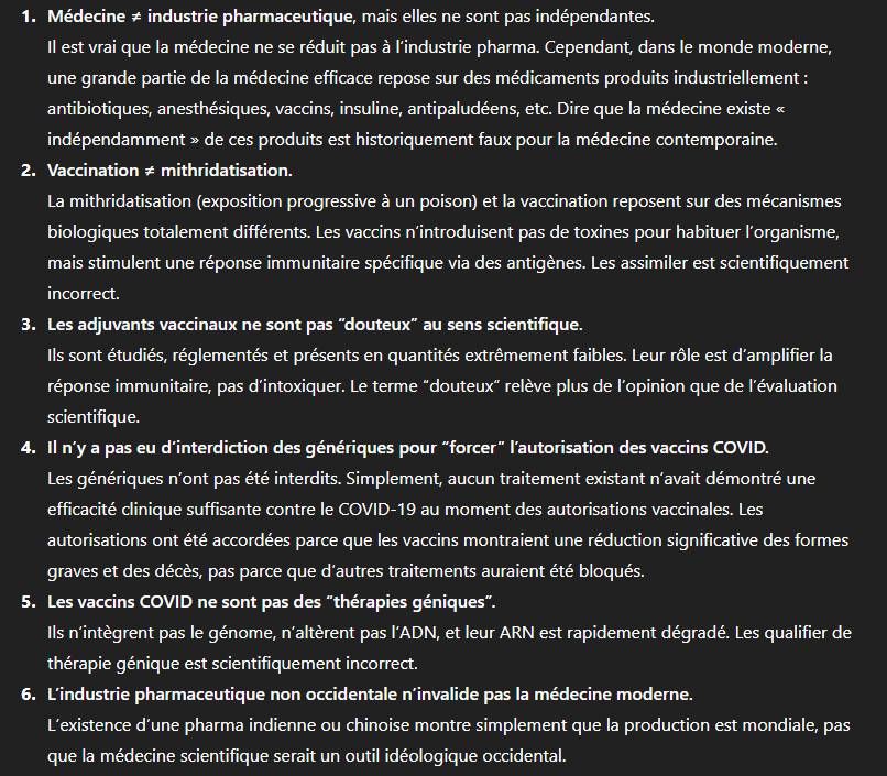 6. L'industrie pharmaceutique occidentale n'invalide effectivement pas la médecine, ni moderne ni ancienne. Mais elle s'organise en cartel, voir plus haut, et juste au-dessus, 1.