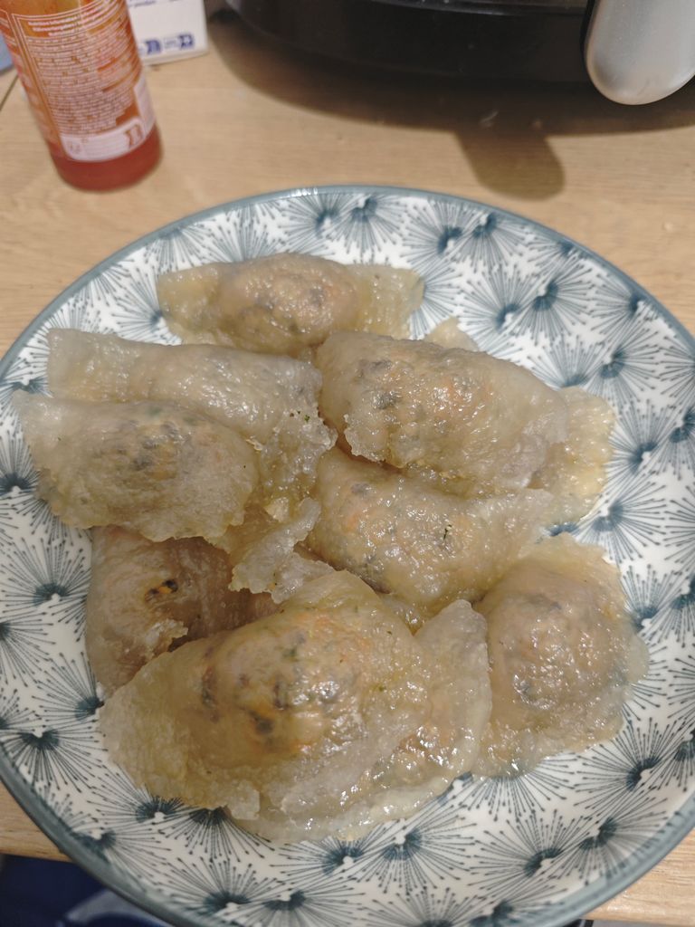 vapeur, pate bien transparente et collante (tapioca)