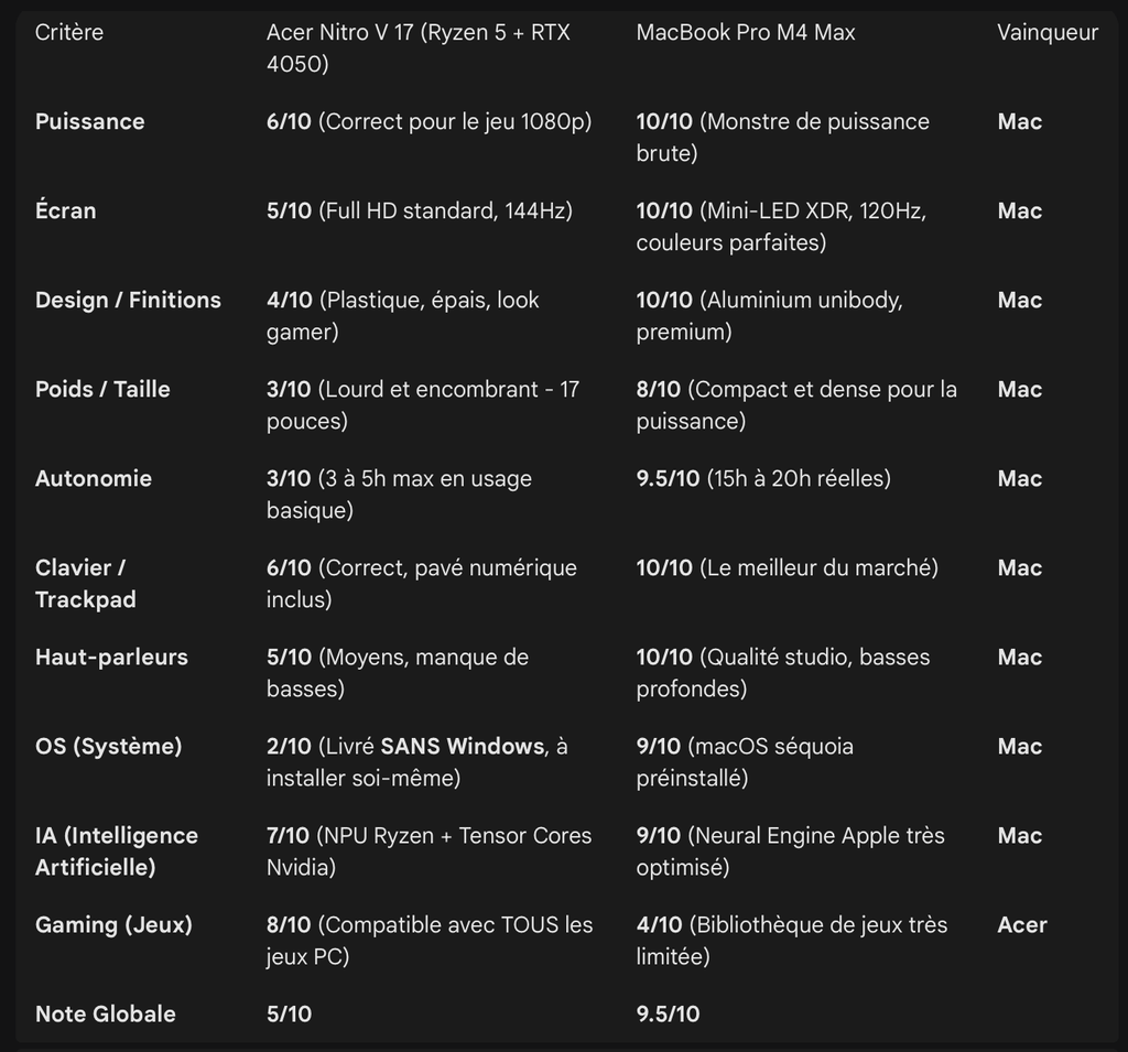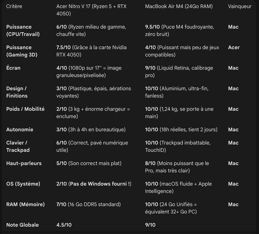 J'ai comparé avec le MacBook Air M4 15″ exactement de la même gamme et oui c'est le cas