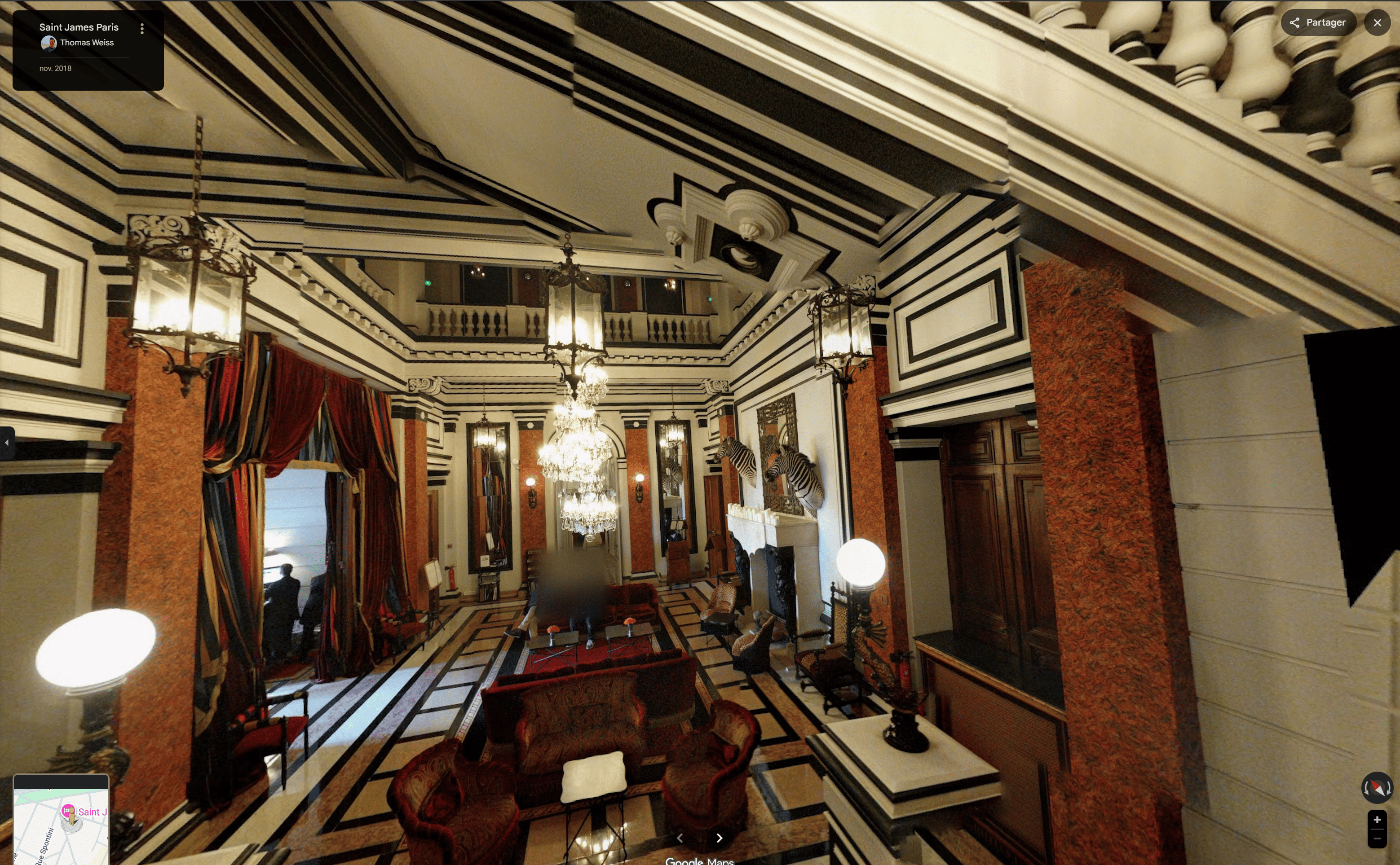 Or l'Hôtel Saint James correspond parfaitement à sa description, c'est même le seul dans la capitale. Il est d'ailleurs situé à 1km à pied du 22 avenue Foch, l'appartement d'Epstein.