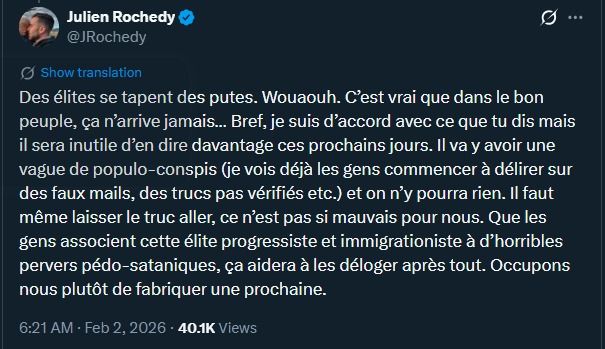 Et Tapin Rieu a réussi a placer Islam (je suis pas muzz et pas pro muzz mais je sais faire la part des choses) en parlant d’Epstein