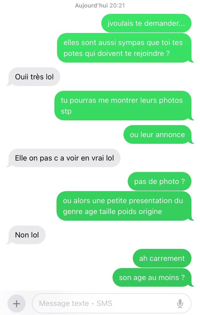 Non, seulement je teste mes escortes en leur demandant des trucs que je vais pas faire du tout juste pour savoir si j'aurais affaire à une fille coopérative ou une chieuse, et là elles sont toutes open et avenantes.