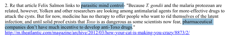Ça parle même de parasites de contrôle mental et d'à quel point c'est une "chance" que la recherche ne se développe pas là-dessus