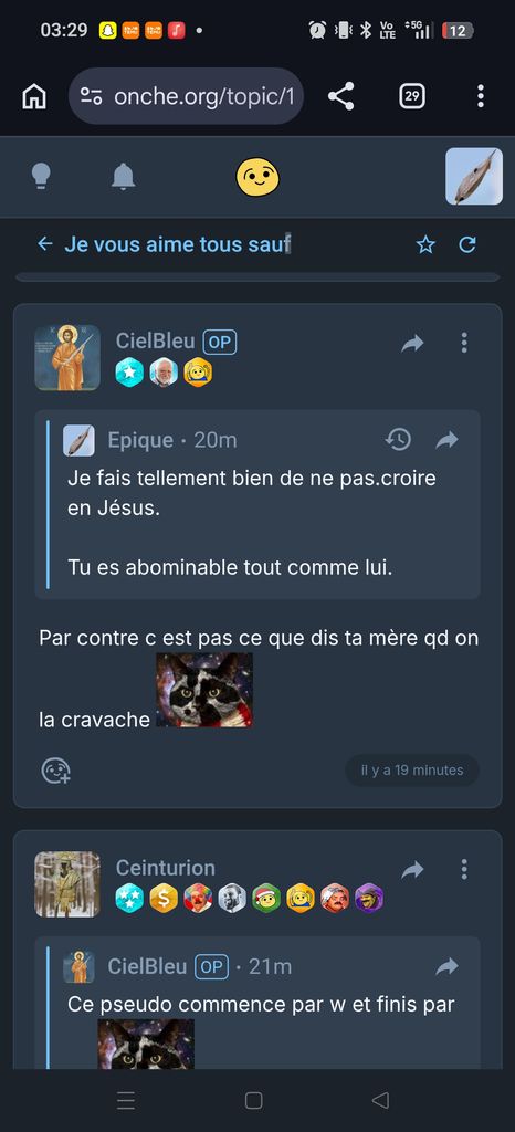 Je ne suis pas dans la foi chrétienne mais je vais quand même prier pour toi l’op et pour tous les membres du forum, j’espère que chacun d’entre vous trouvera le bonheur et l’accomplissement, bonne nuit et reposez vous bien.