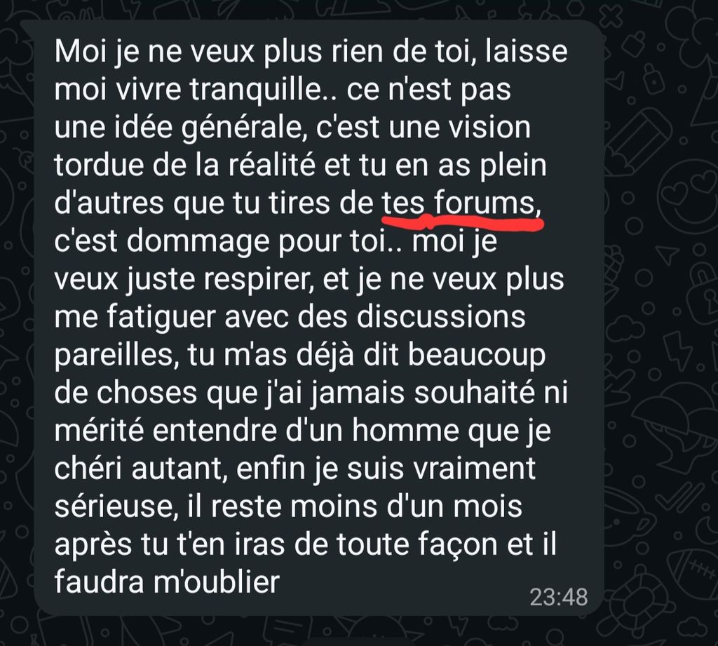 Je pense pas que toutes les femmes sont des merdes, juste que meme si je suis pas incel je garde un coté incel au fond de moi