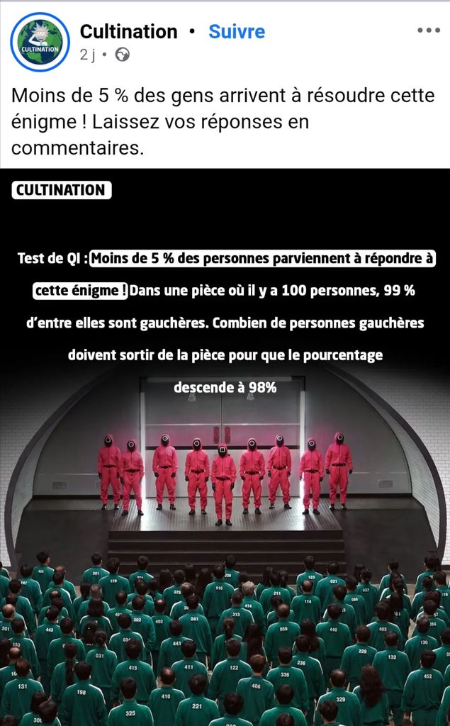Genre y'a moins d'une personne sur vingt qui arrive à résoudre ce problème bidesque