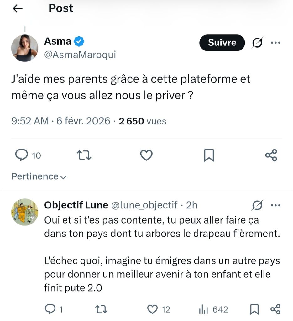 Onlyfan paie, le trafic de drogue paie. Le travail ne paie pas. A partir de là tu peux dire ce que tu veux ça changera rien.