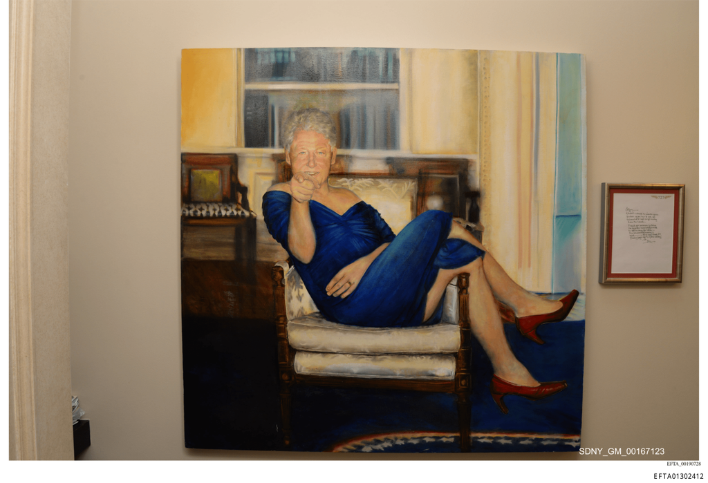 Soit une sorte de plaisir privé d'un juif qui se dit qu'avoir le portrait d'un goy travestit qui a été à la tête de la plus puissante nation du monde le rend puissant.