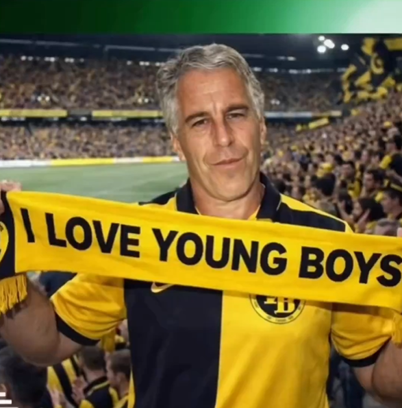 la derniere photo connue de Epstein en liberté dans un stade de foot Suisse.