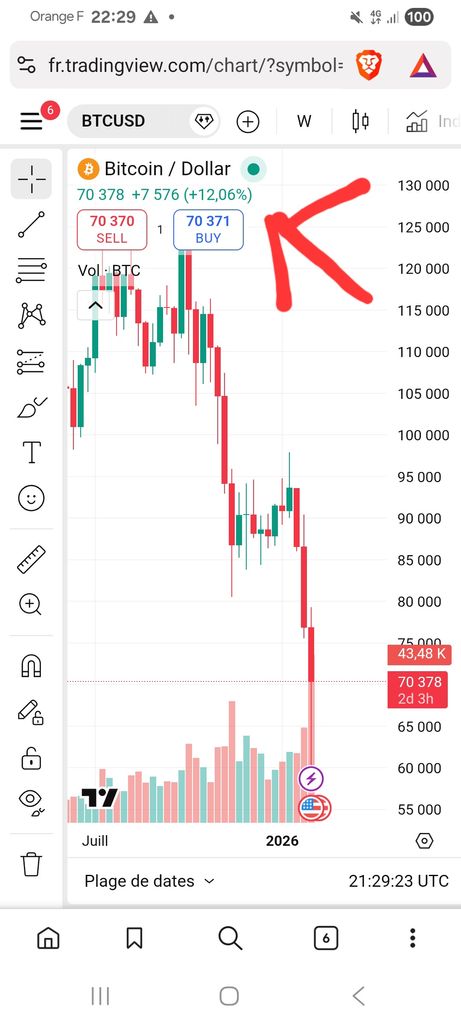Ca va remonter khey... aujourd'hui les gens ont recharger. Btc + 12 %.. j’avais juste mal conseiller et dire de recharger vers les 76k ( pas facile a trouver le " bottom " ( zone ou recharger plus bas ).... mais bon pas grave , ca remontera.... et c'est bon signe car nous sommes vendredi ( début week-end). Le week-end = gens ont du temps libre , se reposent et peuvent investir ... faudra voir la clôture weekly ( dimanche soir ).