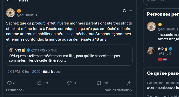 J'ai pas envie d'avoir un fils qui va se laisser manipuler et endoctriner pour devenir un parfait mouton "progressiste", fumer du shit, écouter du rap et se faire un malin plaisir de me trahir par pur esprit de contradiction.