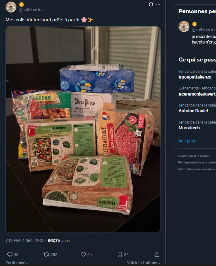 Qui emballe ses colis vintes dans des paquet d'épinard a la crème findus acheté a la superette de new delhi