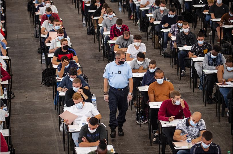 La première épreuve c'est le test psychotechnique puis une mise en situation où l'on doit expliquer le rôle du policier, les infractions commises et les lois à appliquer, ça dure 8 heures dans une salle de plusieurs centaines de personnes comme ça: