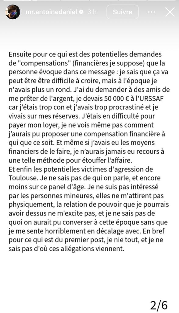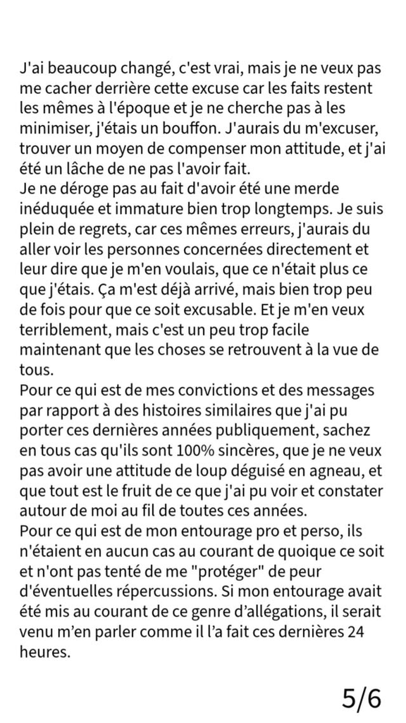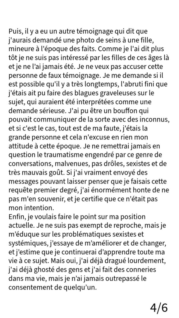 et que tout son pavé d'excuse c'est juste parce qu'il préfère faire le cuck gauchiste ou faut 100% croire au vitime plutôt que d'assumer la vérité, qui est un message il y' a 9 ans a une personne majeure