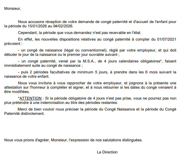 sauf est se que dans le congé les jours sont ouvrables ? donc le congé compte du lundi au vendredi ? donc encore devoir passé 3h de téléphone avec la MSA, renvoyé le papier et nous dires que non c'est pas encore bon