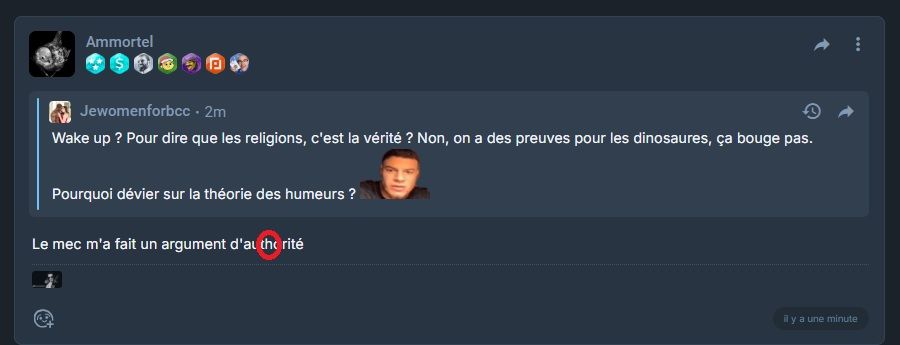 Le dinosaure, c'est fake parce que la théorie des humeurs. Truc de ouf, mon reuf, tu n'hésites pas, on veut ta conférence face à des géologues qui ne sont pas scientifiques selon toi.