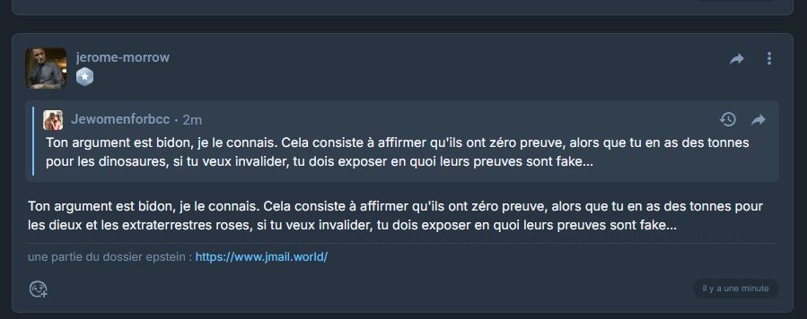 Justement, pour moi, je peux pas me permettre de dire que les dinosaures sont fake, j'ai pas de preuves solides pour enlever des tonnes de découvertes qui ne se reposent pas sur des récits...