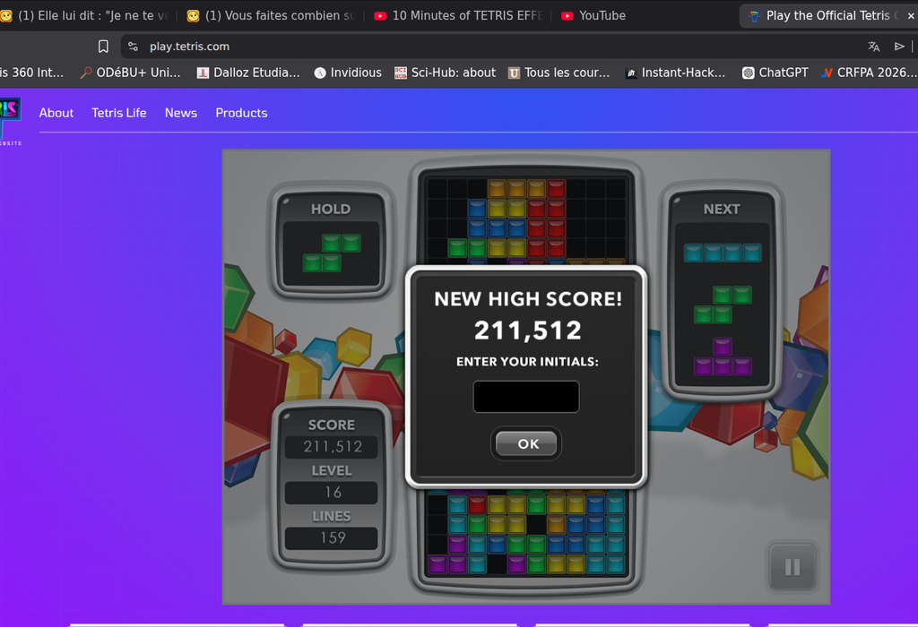 Retire le moins de lignes possible sans tetris, parce que sinon tu n'auras pas le temps de faire un bon score avant que le jeu ne s'accélère