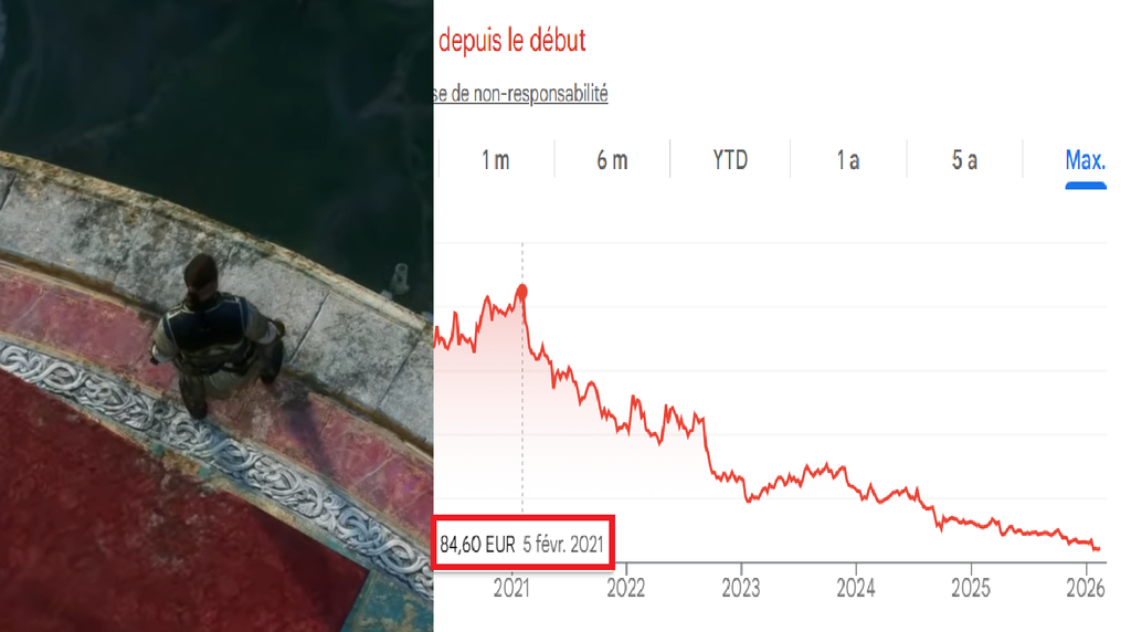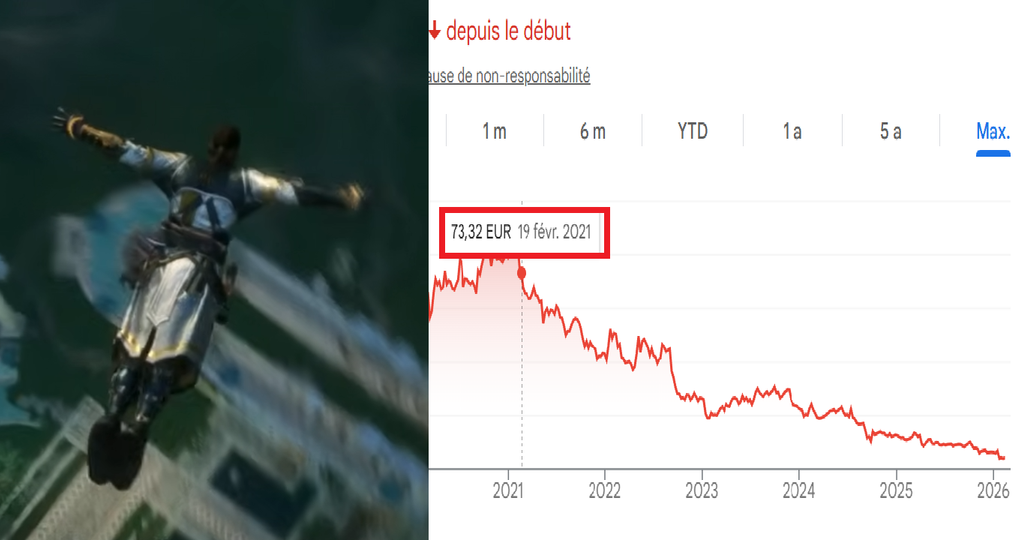 de toute ma vie j'ai jamais vu un aussi beau saut de la foi que celui qu'à fait le cours de l'action ubisoft