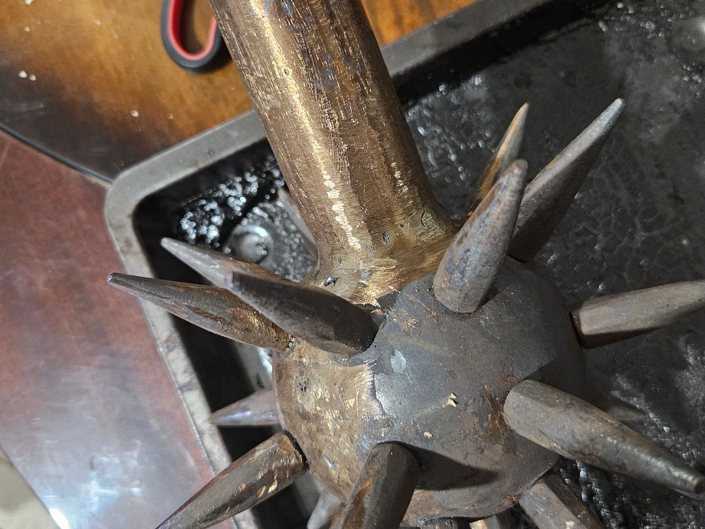 La j'essaie une dernière chose, un revenus (traitement thermique au four) si jamais ça fonctionne (c'est possible que ça ne serve a rien finalement) je suis condamné a soudé toutes les pointes a l'extérieur, ce qui sera extrêmement moche, puisque je pourrais pas les Meulé.