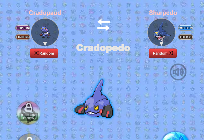 on peut fusionner des pokémons et à un moment j'ai eu une fusion entre cradopaud et carvanah (sharpedo)