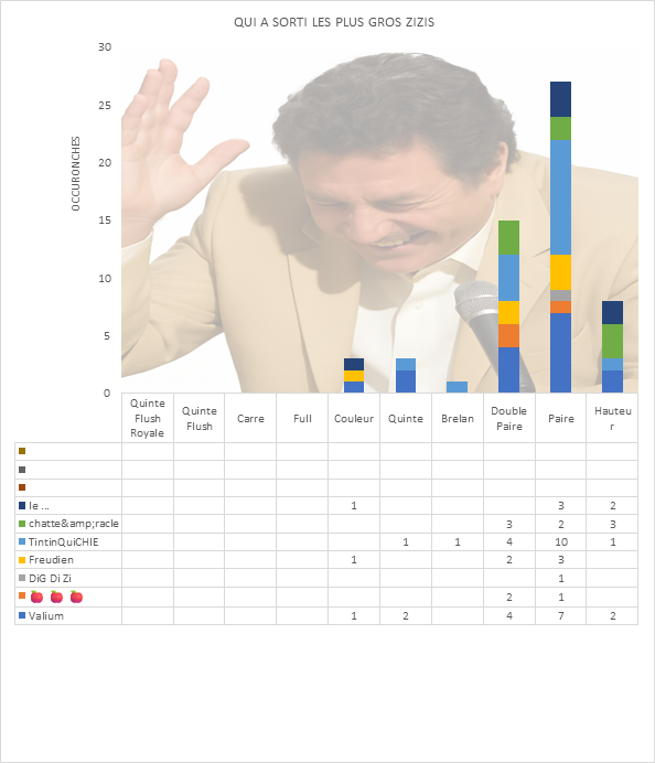 3ème : chatte&racle concassé par Valium avec Paire de Cinq Hauteur As contre Hauteur As à l'issue de la manche n°42