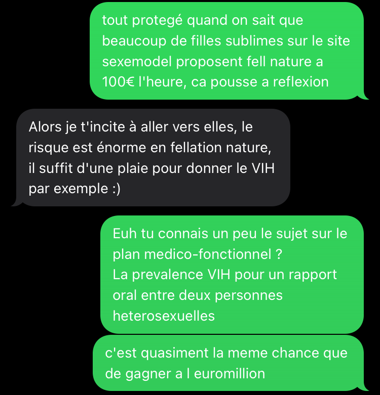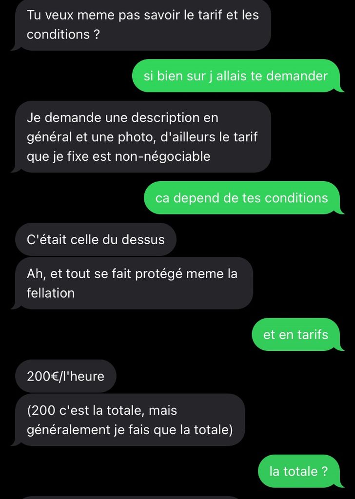 Une chubby presque magalax m a mis comme condition de me voir en photo pour 200€ l'heure TOUT PROTEGÉ y compris la fell alors que j'ai des putes toutes fraiches et sympas qui me sucent nature et baisent avec capote pour 20 ou 30 balles
