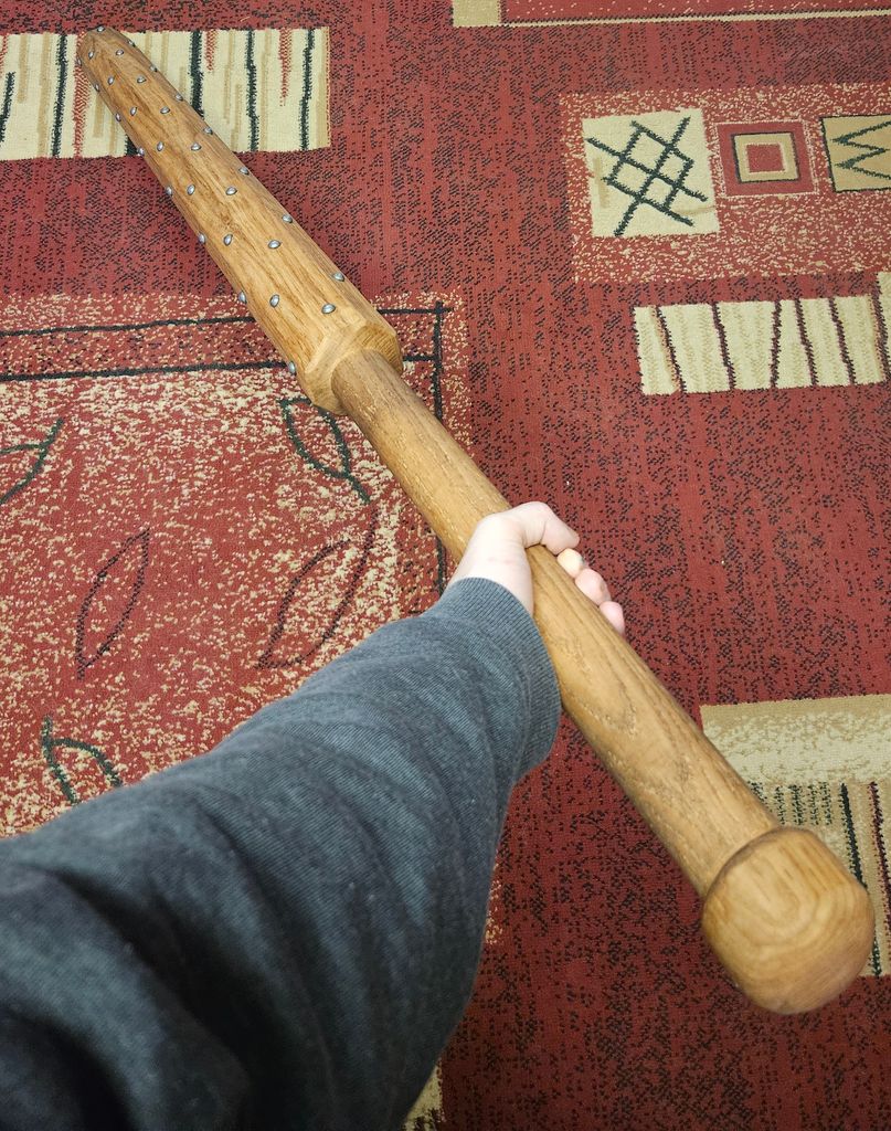 Je vais sûrement faire le manche en bois, et sûrement a deux mains.