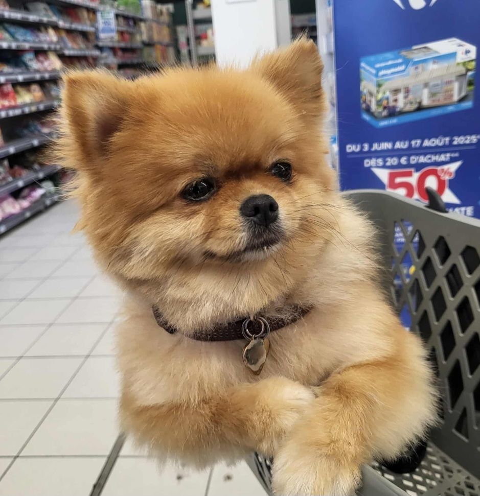Mon pere le promene etc.. pendant que je bosse. Chien tres propre et mignon..