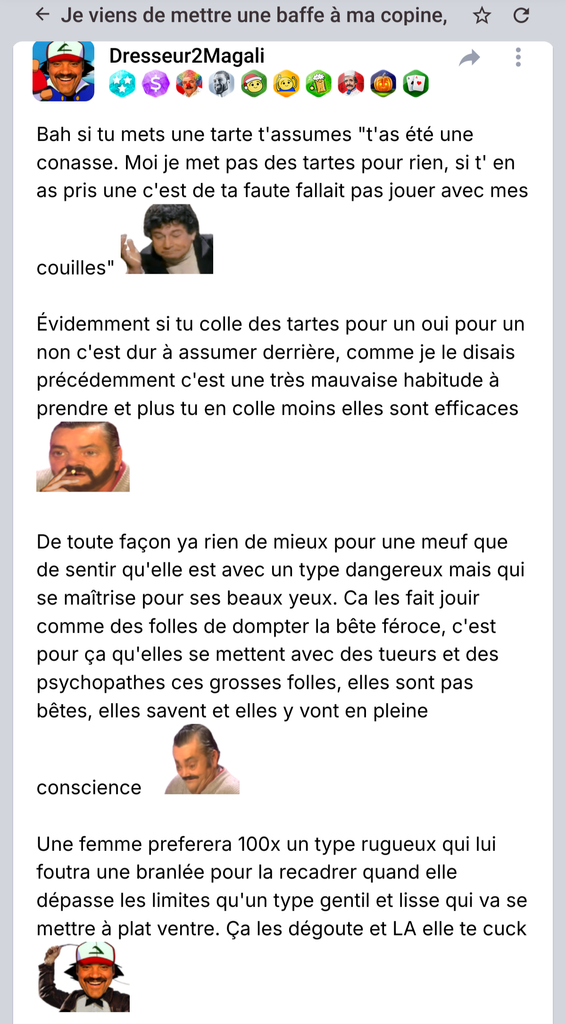 La maltraitance physique pour garder sa femme c'est un truc de laidron cassos
