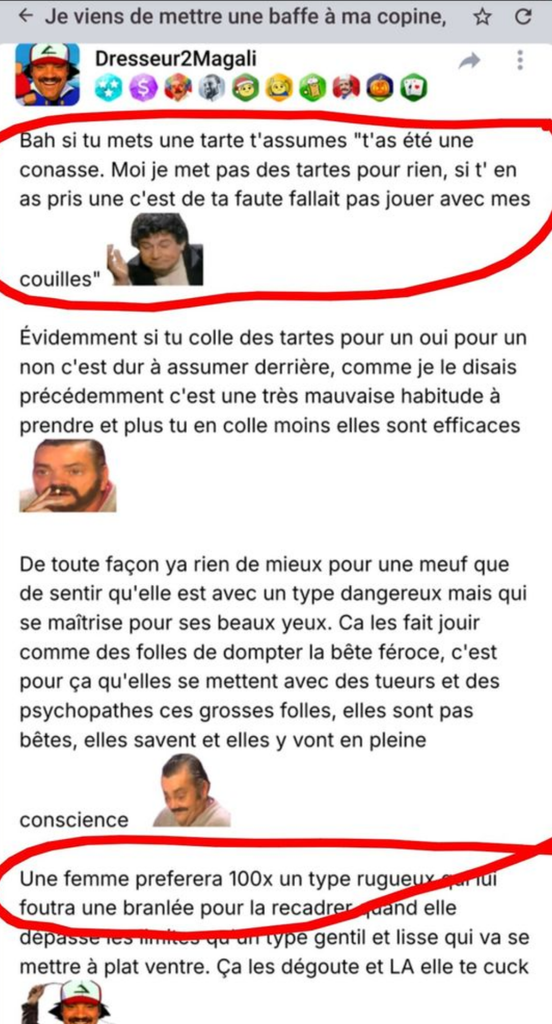 Perso je tape jamais c'est pas mon délire mais je connais les femmes et je sais qu'il a raison pour bcp d'entre elles c'est triste mais c'est ainsi