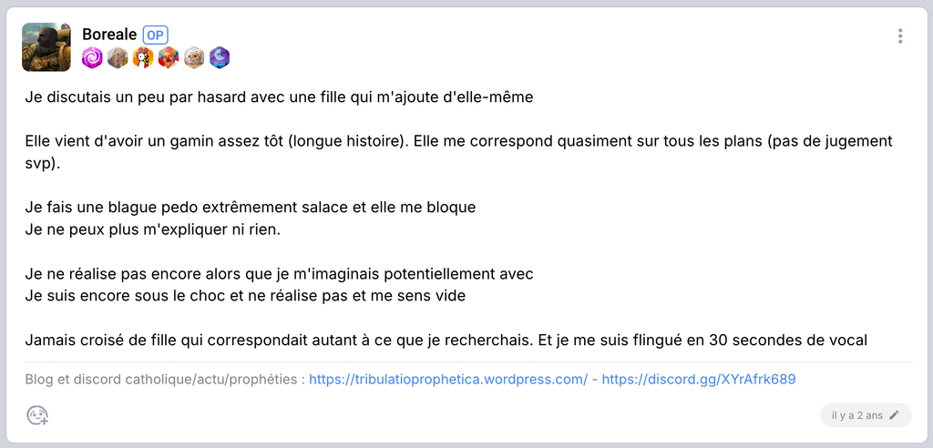 Ce n'est pas moi qui le dit, c'est un khey qui se définit certainement comme catholique éveillé, très équilibré et sain d'esprit. Mais absolument pas aveuglé par l'envie